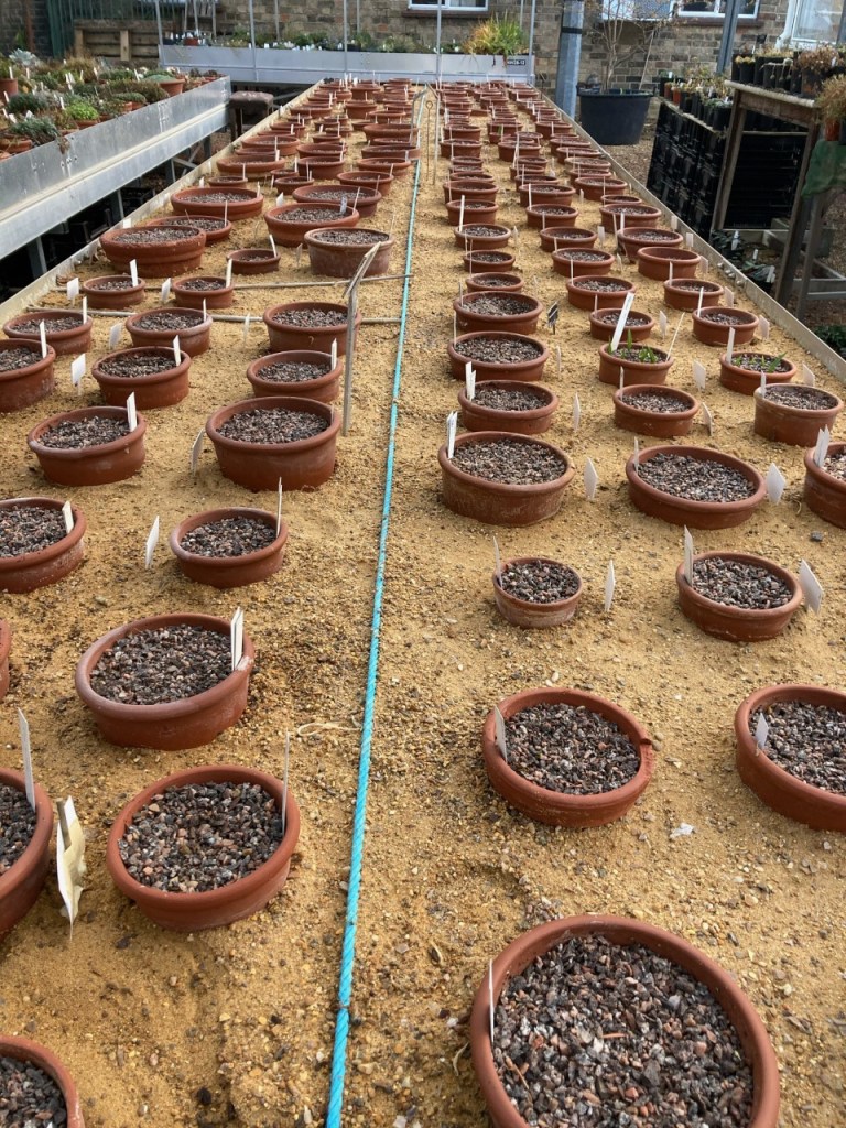 Now that my bulbs, those at Kew and Cambridge, and many others around the world are in the ground, it is all a matter of patience. Weather patterns greatly influence growth and so it is difficult to say for certain when species will emerge and whether they will flower. But that is part of the excitement! We know that species tend to have specific months in which they will grow and flower, and this is relatively consistent from year to year, so the experts such as Simon, Paul, and Tom know which ones to look for first. Yet even then, sometimes they emerge a little earlier or later than expected, keeping even the experts on their toes. So, we will all wait in trepidation. I will be looking out the kitchen window to see if a speck of green has risen on our little raised bed, others will be carefully monitoring the numerous pots in the national collection. As the long winter nights roll in and Christmas draws ever nearer, we wait, we must wait. Through the cold long months of January and February, with the promise of spring and the warming weather we wait.