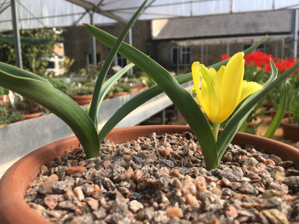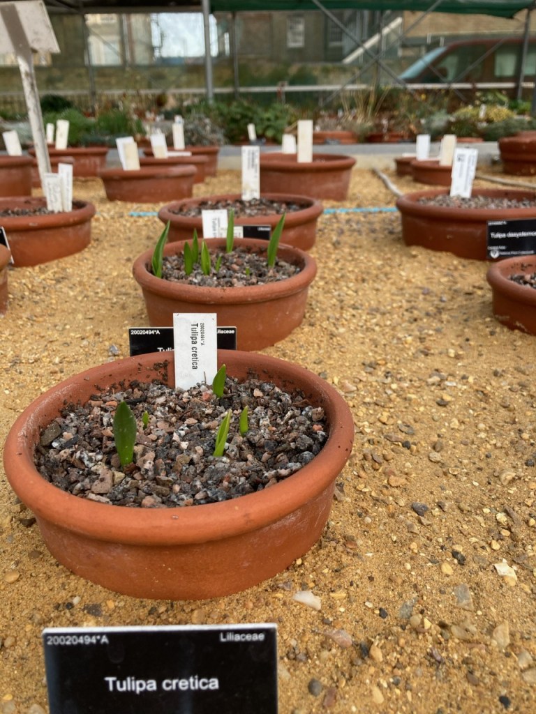 I am growing tulips in my garden purely for enjoyment, yet the collections at Kew and Cambridge have an extremely important role, acting as ex-situ conservation, research, and educational resources. These living libraries at Kew and at Cambridge are able to provide an enormous amount of material from one small place, whilst also securing these species’ future outside of their threatened native habitat – something which is worth noting next time you are admiring plants in a Botanic Garden. Nonetheless, there are many challenges associated with this type of large-scale project that I will not face in my little patch of London soil. Primarily, at Kew and Cambridge, they grow a broad spectrum of species, some of which are very difficult to cultivate as they require specific conditions and attentive care. Several of these species are rare, have not been proliferated in many collections, and are therefore extremely valuable. This is exactly the scenario that requires the expert skills of people like Simon, Paul, and Tom rather than the basic gardening skills I possess. I am thankful they are around to handle this difficult task. Even so, much like myself, the teams certainly like the challenge of growing these flowers and enjoy seeing them explode into colourful blooms in the spring.