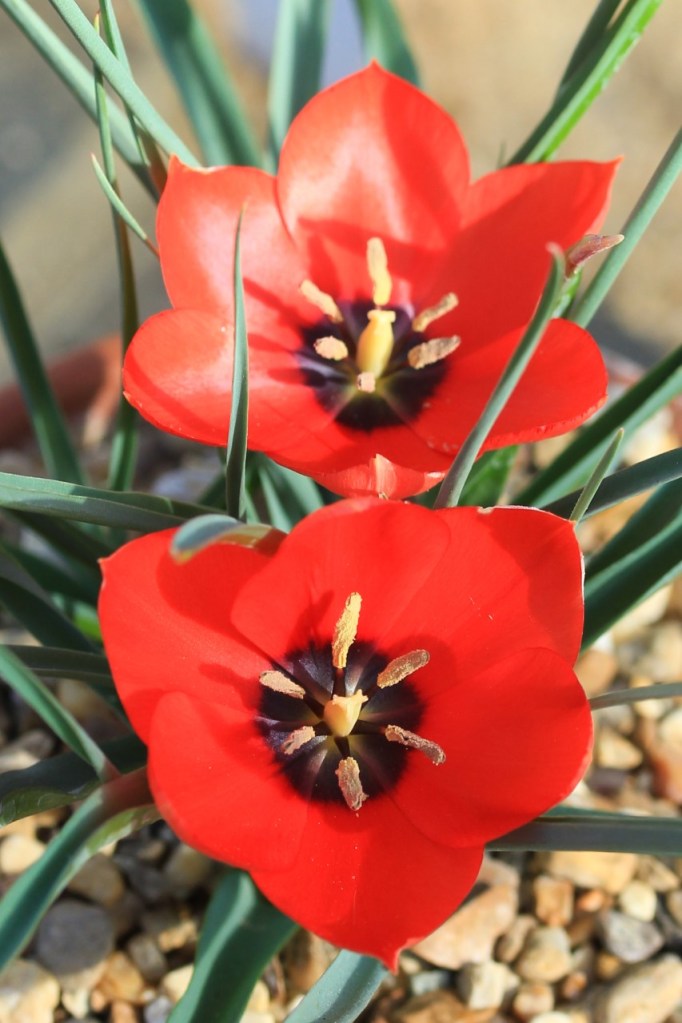 But if you decide to take up the challenge, then now is the time to plant, if you have not done so already. During October and November tulip collections are readied at both Kew and Cambridge, as well as at an array of other scientific institutions with collections including the Naturalis Biodiversity Center in Leiden, where some of the most recently described species are grown. Some in pots, some in raised beds, and others left to fend in open gardens. Yet, they are all being meticulously planted, deep enough to survive the winter cold and frost, but close enough to the surface to allow little green shoots to emerge in the warming spring season. I had to carefully pack my soil with horticultural grit to ensure it drained well as bulbs can rot and become diseased in waterlogged soil. A real problem when trying to grow these plants in the wet climate of the U.K.!