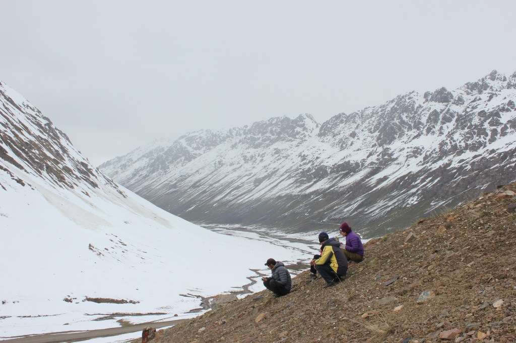 High up in eastern Kyrgyzstan in freezing conditions looking for alpine plants.