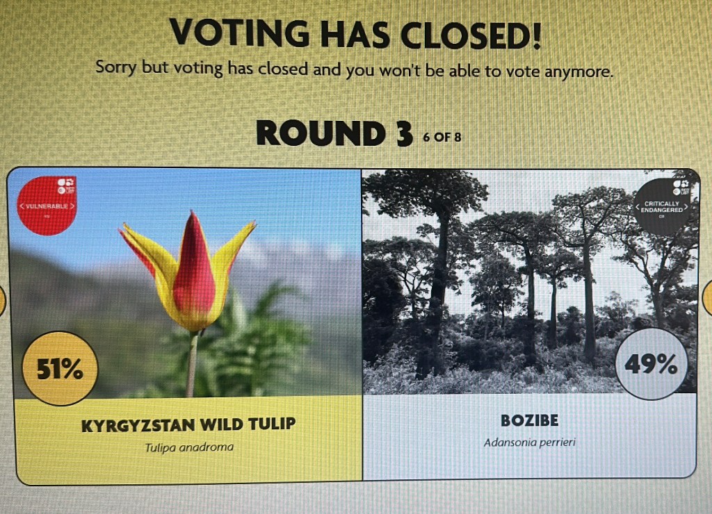 After a tense opening round—secured by a last-minute surge of support that saw the tulip narrowly defeat De Winton’s golden mole (Cryptochloris wintoni)—the stage was set for a remarkable underdog journey. T. anadroma went on to overcome a series of formidable contenders, including the Hawaiian endemic Ka Palupalu O Kanaloa (Kanaloa kahoolawensis), the Bozibe Baobab (Adansonia perrieri), and the White-Rumped Vulture (Gyps bengalensis), often by the slimmest of margins.