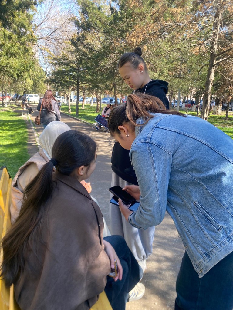 Our volunteers. From left to right: Nazima, Shirin, Kanykei and Baktygul. Photo credit: Baktygul Ernist kyzy